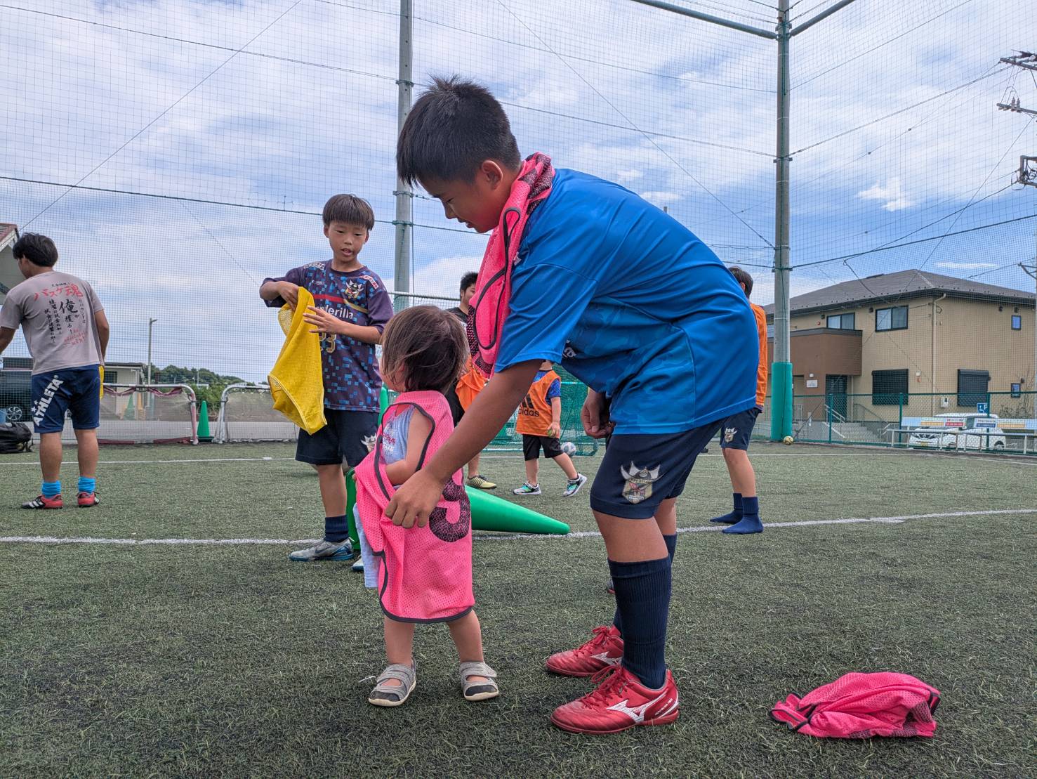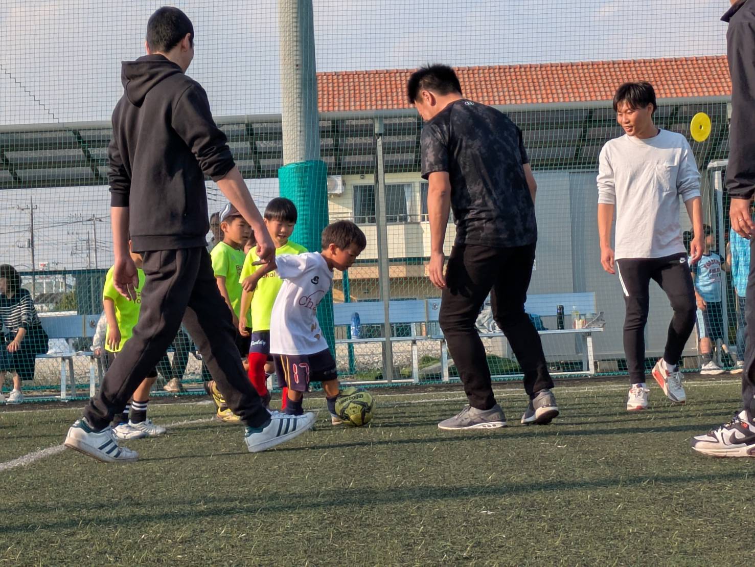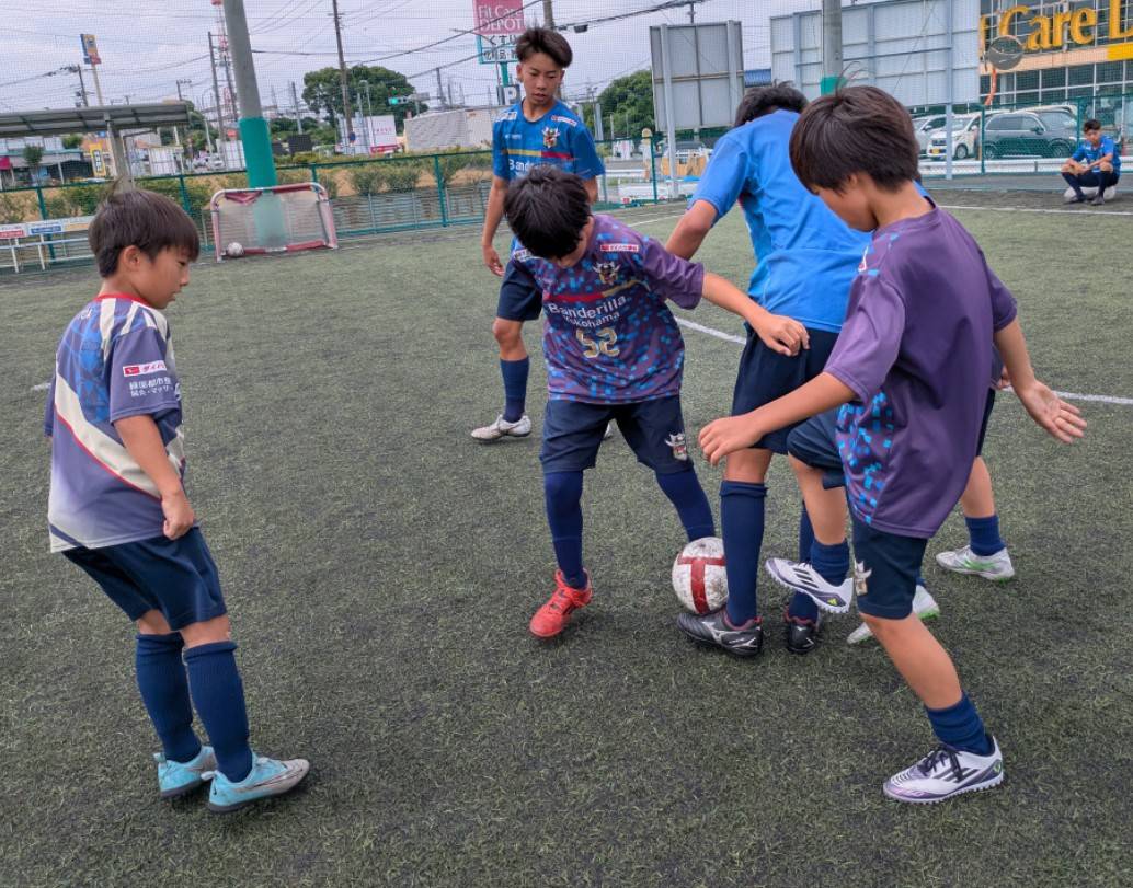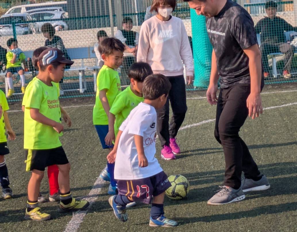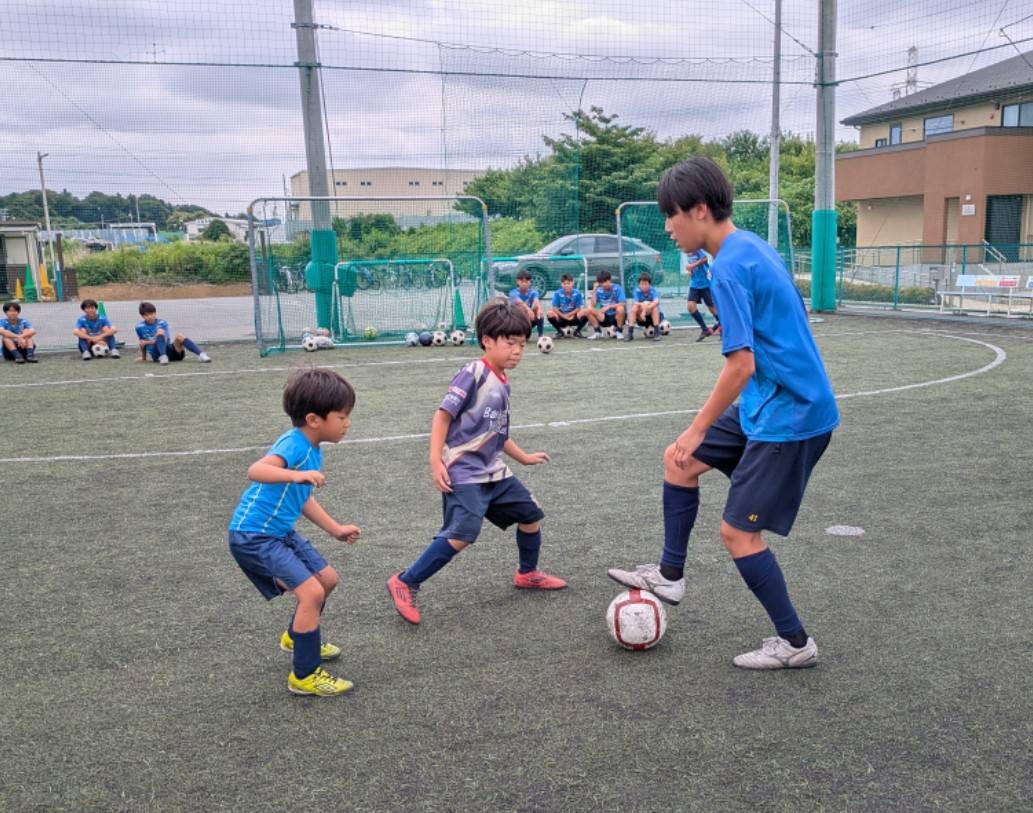 当チームには多世代の選手達が在籍しているので、その環境を最大限生かしジュニアとジュニアユース、OBとジュニア、トップとジュニアユース等様々なカテゴリーの選手達が一緒にボールを蹴る機会を作っております。