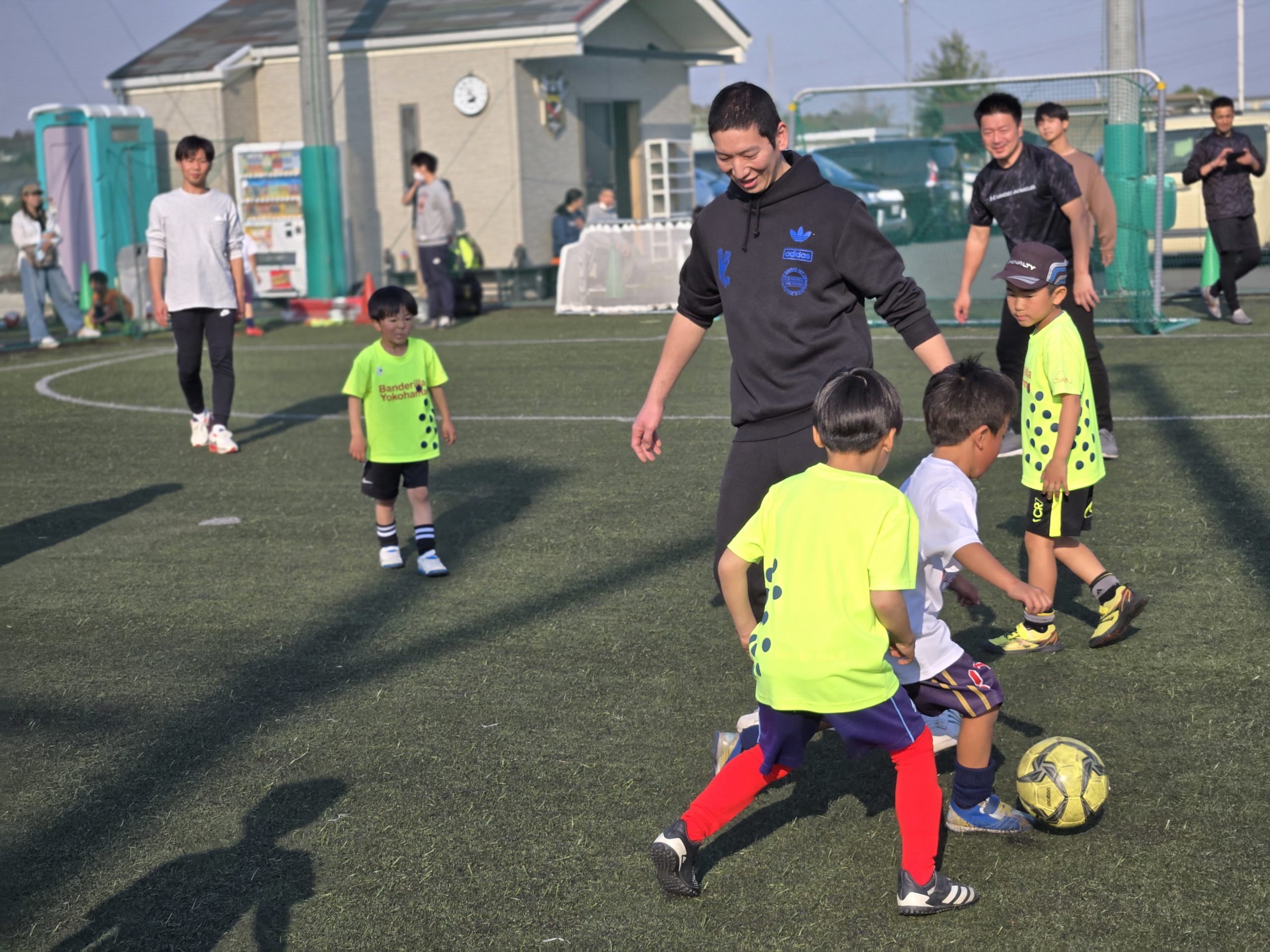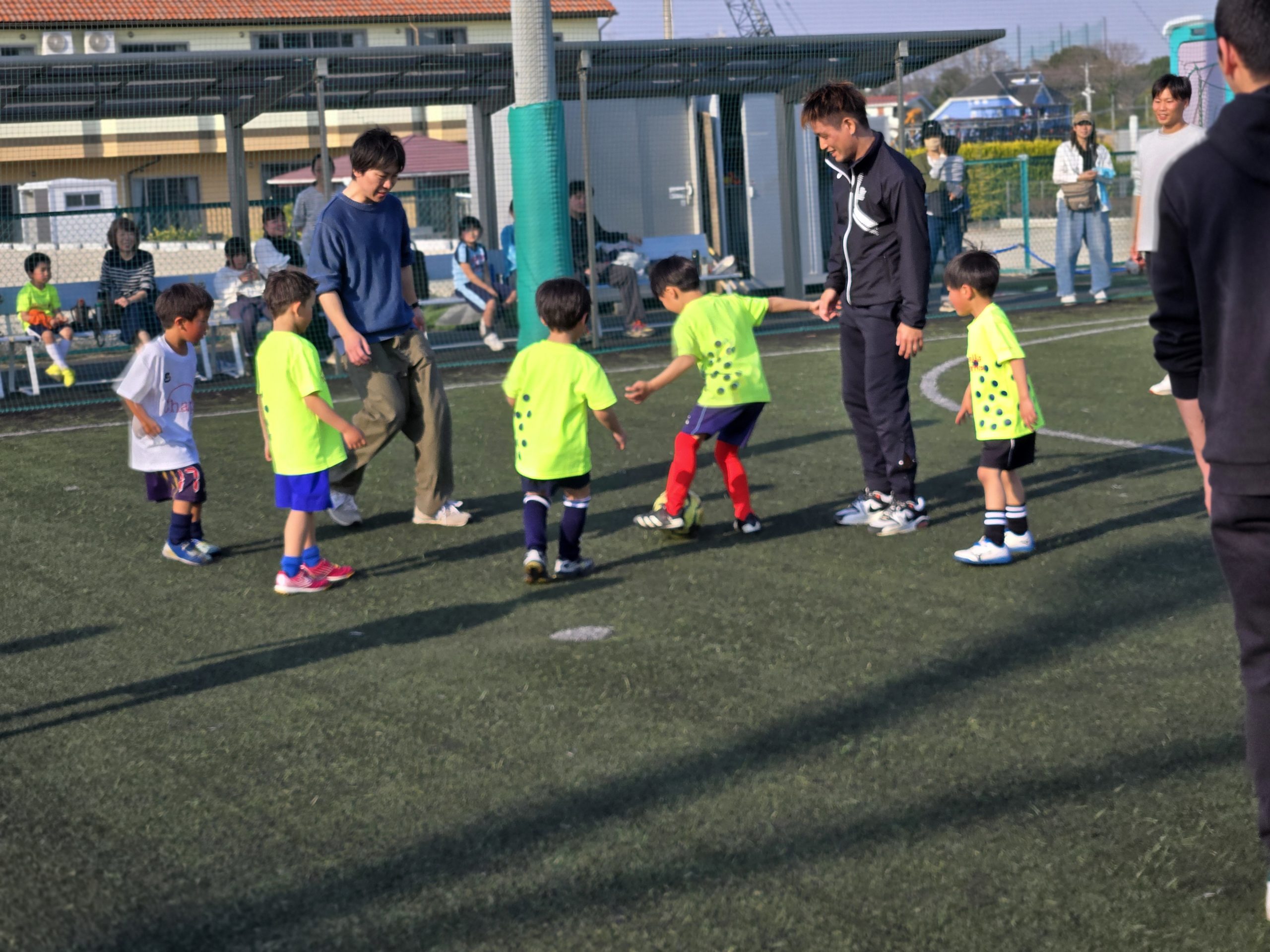 ジュニア選手と保護者の皆様で定期的に親子サッカーを行い、ボールを通して子供の成長を直で感じ取っていただいております。
